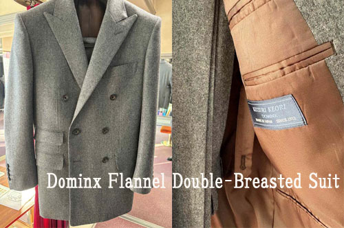 英国調の佇まいが魅力の一着を納品しました。生地は葛利毛織〈ドミンクス〉の上質なフランネル。柔らかな起毛感と深みのある色合いが、冬の装いに品格を添えてくれます。デザインはダブル6つボタン2つ掛け、肩はロープドショルダーで,クラシックでありな…