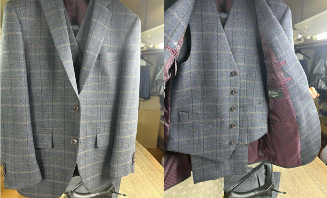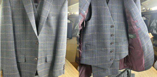老舗生地ブランド「ドーメル」の品格漂うスリーピースが完成しました。深みのあるグレーに、落ち着いた格子柄が映えて印象的。裏地には高級感のあるワインレッドを合わせ、脱いだ瞬間にも拘りを感じさせる一着です。ドーメルならではの柔らかな光沢と快適な…