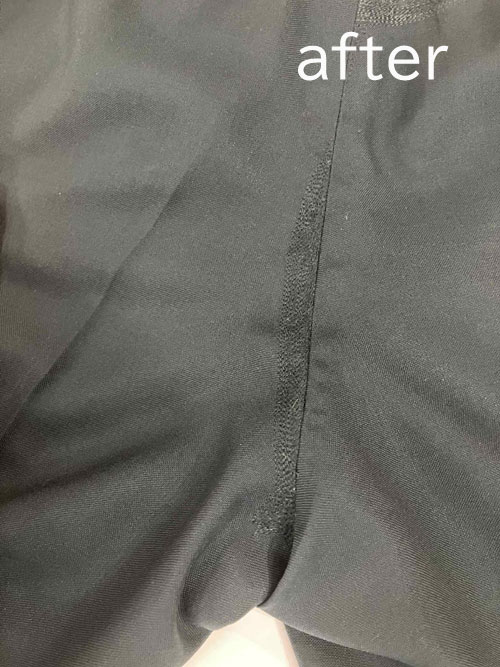 ミシン跡は残り、近づくとわかりますが、股下なら目立ちにくく、意外と気づかれません。