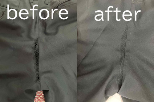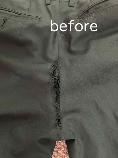 股下破れ補修、承ります。