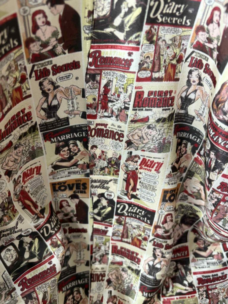 そして裏地には、LBD(Lear Browne & Dunsford)社製のヴィンテージコミック柄を採用。
