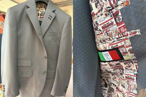 イタリア・ナポリのCoppioppoli(カチョッポリ)の服地で仕立てた一着を納品