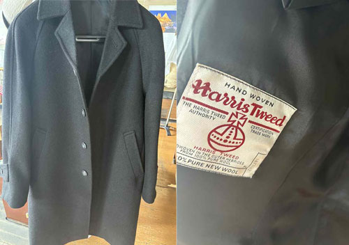 ハリスツイードの黒ベース、控えめなマッド調の風合いが魅力の